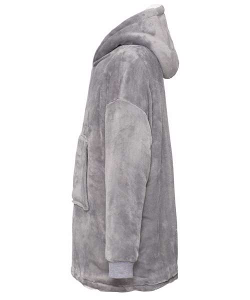 Super-soft microfleece hoodie with snuggly warm sherpa lining. Oversized – one size fits most. Large pocket keeps your hands warm. Reversible – choose your favourite way.