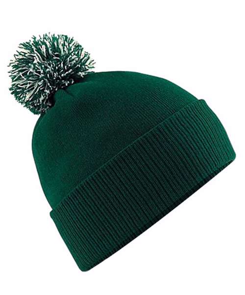 - Dual style cuffed or slouchTwo-tone pom pomDouble-layer knit