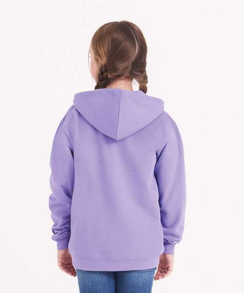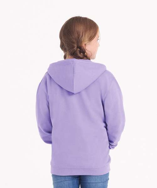 Full zip hoodie with covered main zip with self fabric. Twin needle stitching detail with double fabric hood. Kangaroo pouch pocket and ribbed cuff and hem, no drawcords to comply with EU regulation. Simple tear out label makes it perferct for rebranding. Brushed inner fleece. Soft cottin faced fabric creates ideal printing surface.
