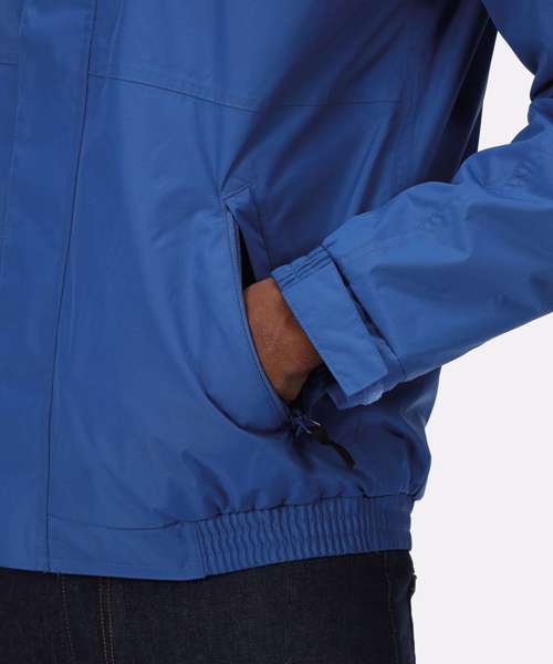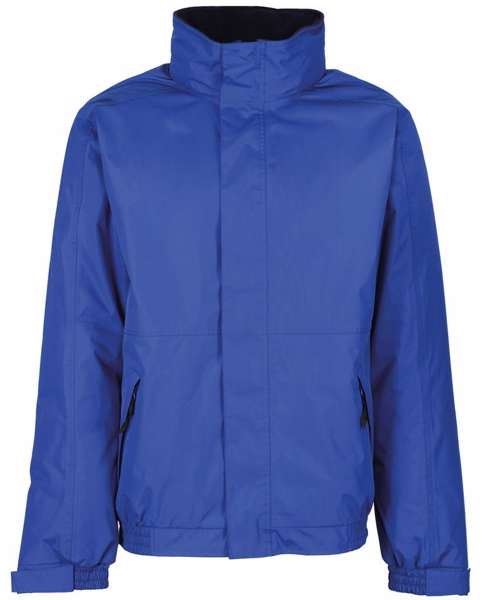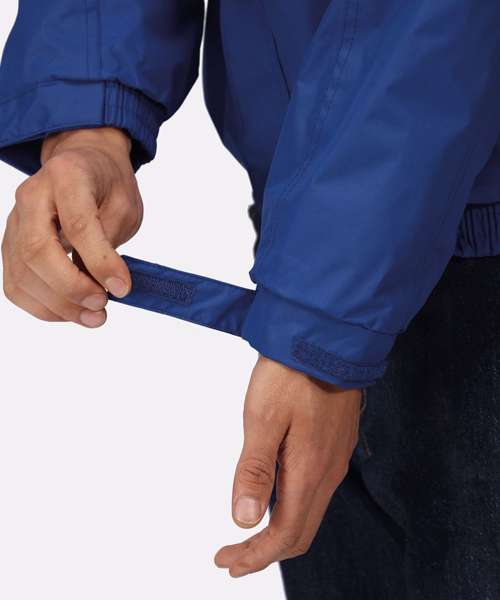 Waterproof Hydrafort polyester fabric. Windproof fabric. Anti-pill symmetry fleece reverse with taped seams. Concealed hood. Studded stormflap and elasticated cuffs. 2 zipped lower pockets with press studs at hem for embroidery access.