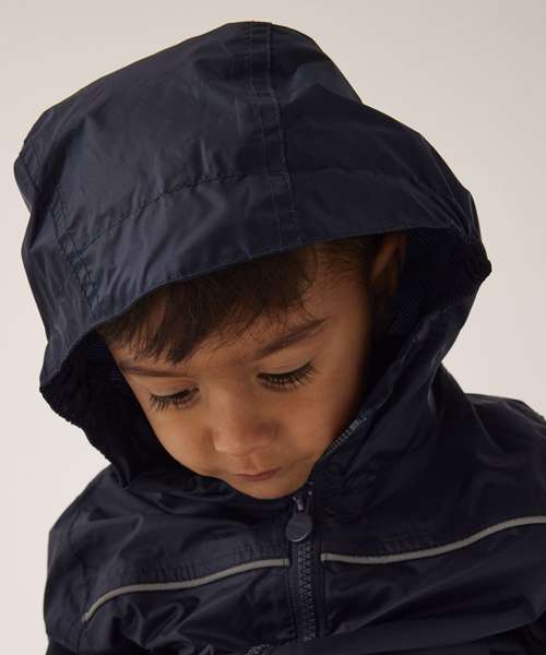 Waterproof and breathable Isolite lightweight polyester fabric. Windproof fabric. Taped seams. Integral hood. Reflective trim to front and back. Part-elasticated waist. Elasticated cuffs and hem.